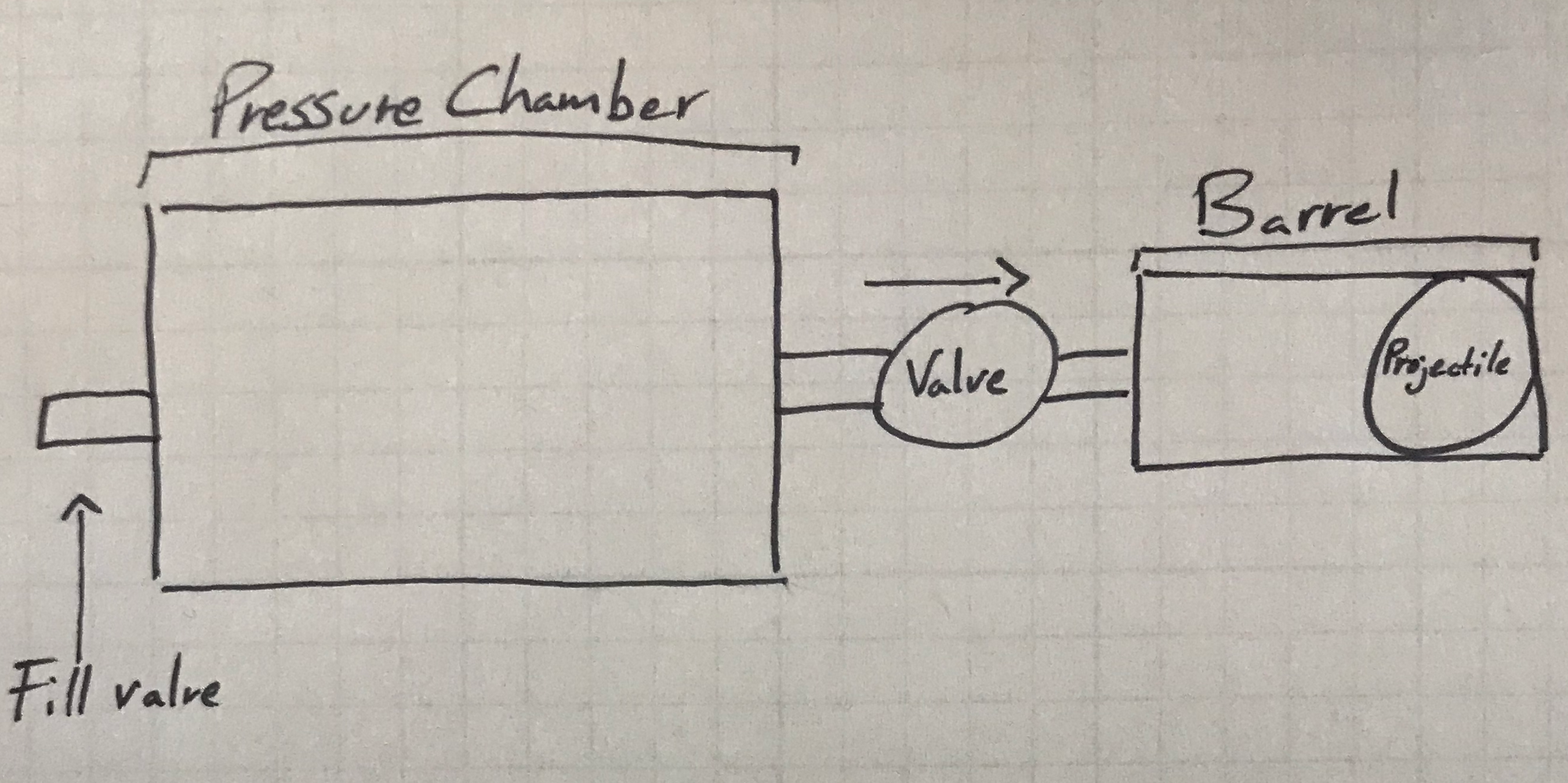 The basis of an air cannon is quite simple. Fill a pressure chamber with air (30-300 psi) then release the pressure through a valve to push your projectile out of the barrel.